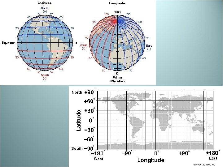 Longitude – (Also called Meridians) are imaginary lines on a map passing through the north and south poles. These lines are used for measuring distances EAST and WEST of the PRIME MERIDIAN. These lines measure 180 degrees west and east of the Primer Meridian (there are 360 degrees total).