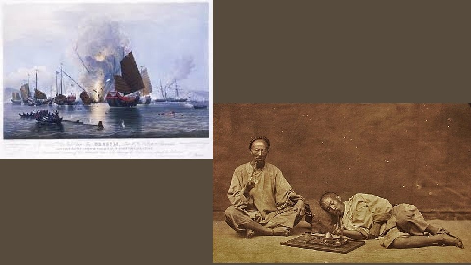 OPIUM WAR 1839 Opium war between China and Great Britain Mostly took place at sea China’s outdated ships didn’t stand a chance against British steam powered gun boats China easily defeated 1842 signed Treaty of Nanjing