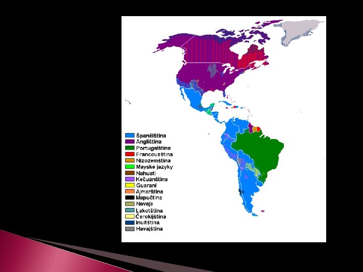 Jazyky � Španělština: zhruba 310 milionů lidí � Angličtina: zhruba 300 milionů lidí � Portugalština: zhruba 185 milionů lidí � Francouzština: zhruba 12 milionů lidí � Kečuánština: 10 -13 milionů lidí � Guaraní: zhruba 6 milionů lidí � Čínština: zhruba 5 milionů lidí � Italština: zhruba 4 miliony lidí � Němčina: zhruba 2, 2 milionů lidí � Ajmarština: zhruba 2, 2 milionů lidí � Mayské jazyky: zhruba 1, 9 milionů lidí