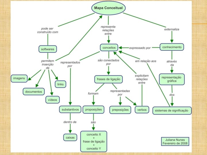 MAPAS CONCEITUAIS 3. Assim. . . os mapas de conceitos são capazes evidenciar significados atribuídos a conceitos e relações entre conceitos no contexto de um corpo de conhecimentos, como em: Uma aula, uma unidade de estudo, uma disciplina ou em um curso inteiro A princípio como trabalhar com ele? Primeiramente ele sempre deve ser explicado, O aluno deve ter conhecimento do assunto.