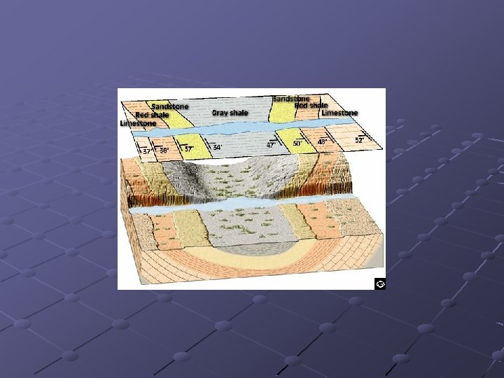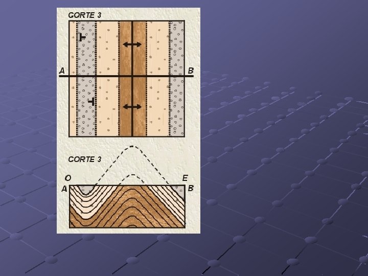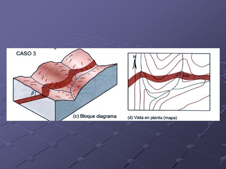 Capas inclinadas En estos cortes se puede observar como simplemente cambiando uno de los datos presentes en el mapa geológico, cambia completamente la interpretación de la estructura geológica.