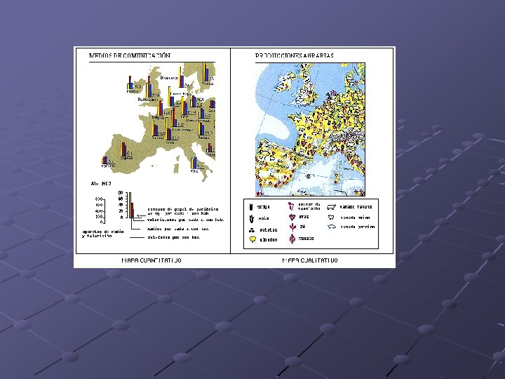 Mapa Temático La Asociación Internacional de Cartografía dice: "Un mapa temático es aquél que está diseñado para mostrar características o conceptos particulares. En el uso convencional de los mapas, este término excluye los mapas topográficos. “ ¿Qué es un Mapa Temático? Podemos definir los mapas temáticos como aquéllos que muestran las características estructurales de la distribución espacial de un fenómeno geográfico particular. Cartografía temática Cualitativa y cuantitativa Una información cartografiada es cualitativa si es una descripción de características, mientras que si se describen valores la información aportada por el mapa es cuantitativa. El fin de los mapas cualitativos es el mostrar la distribución espacial o la situación de un grupo de datos nominales. De este tipo de mapas el lector no puede determinar relaciones de cantidad. Los mapas cuantitativos sin embargo, muestran aspectos espaciales de datos numéricos. A menudo la variable cartografiada es única, y el mapa se centra en la variación de esta variable de un punto a otro del espacio geográfico. Estos mapas muestran los datos en una escala ordinal (más que, menos que), y en escalas de intervalo y proporción (cuánto más que).