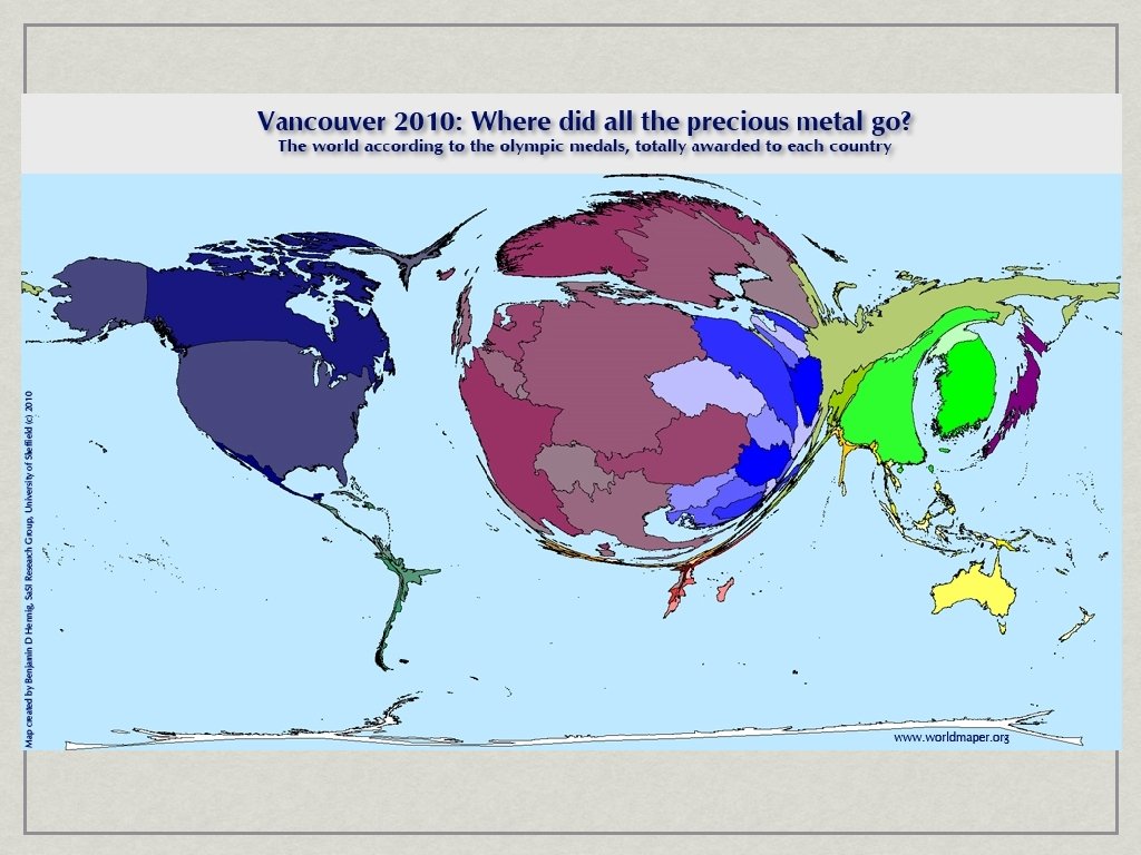 Maps can be biased… Based on their… • Projection • Cartographic convections (colours, symbols, titles etc. ) • Messaging and purpose (intended or unintended)
