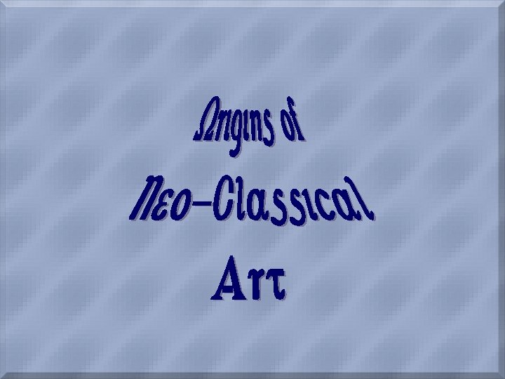 Overview of Neo-Classicism $ Art produced in Europe and North America from the mid-18 c to the early 19 c. $ More than just an antique revival a reaction against the surviving Baroque & Rococo styles. $ Linked to contemporary political events: S Revolutions established republics in France and in America. [Neo-Classicism was adapted as the official art style]. S Association with the democracy of Greece and the republicanism of Rome. S Napoleon used the style for propaganda.