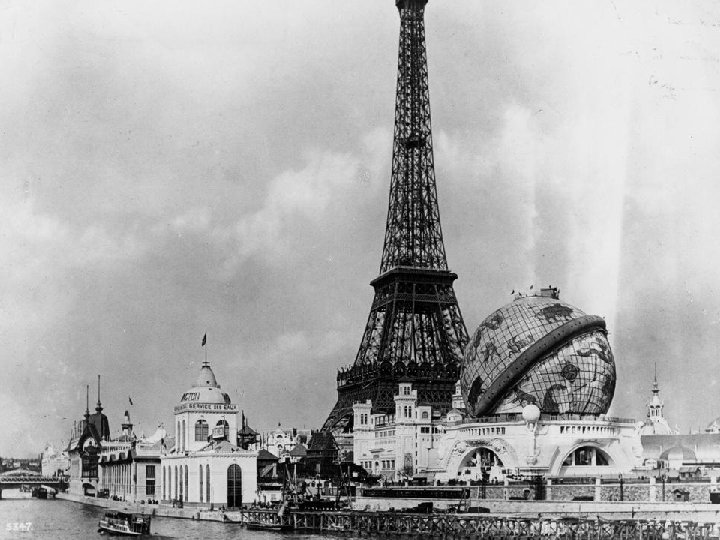 1889: View at the 'Exposition Universelle' across the River Seine towards the Eiffel Tower, and the 'Globe Celeste'. The Eiffel Tower, built to commemorate the 100 th anniversary of the French Revolution, was the central focus of both the 1889 and the 1900 Paris Exhibition site. (Photo by London Stereoscopic Company/Getty Images)