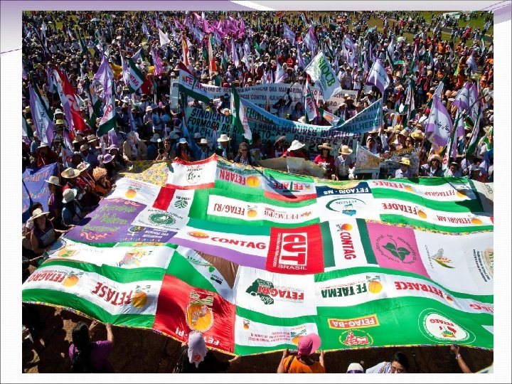 OBJETIVOS • Fortalecer e ampliar a organização, mobilização e formação sindical e feminista das mulheres trabalhadoras rurais; • Contribuir para a democratização das relações no MSTTR, com a superação das desigualdades de gênero; • Atuar para que as mulheres do campo e da floresta sejam protagonistas de um novo processo de desenvolvimento rural voltado para a sustentabilidade da vida humana e do meio ambiente;