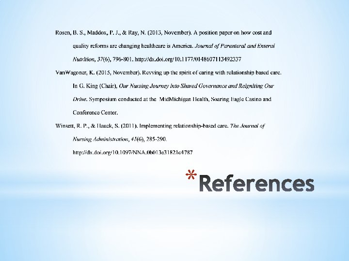 *Shared Governance *Interdisciplinary commitment *CARING (Winsett & Hauch, 2011) (Midmichigan. org, 2015) *