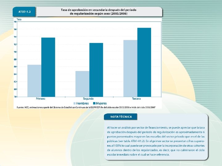 ¿Qué tan eficaz es en cuanto a objetivos de retención? AT 08 -1. 2 Tasa de deserción en secundaria según sexo (2005/2006) Está siendo más eficaz para mujeres que para hombres Fuente: INEE, estimaciones a partir del Sistema de Estadísticas Continuas de la DGPP/SEP, inicio y fin del ciclo escolar 2005/2006 e inicio del ciclo 2006/2007