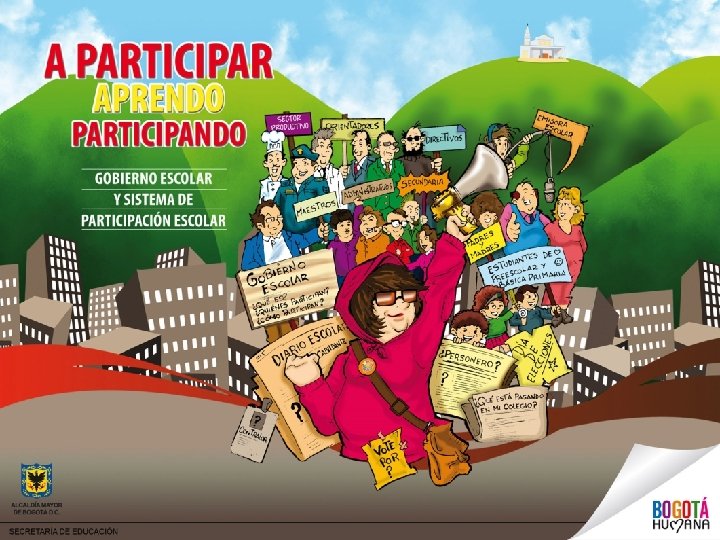 INSUMOS 1. Cartilla Semana de la Participación 2. Guía Pedagógica 3. Juego: “Flexi” Estira tu conocimiento 4. Mural de la expresión: “Como Tu y Yo construimos ciudadanía” 5. Cine Foro: video “ con ojos de joven” 6. Link: ttp: //www. sedbogota. edu. co/index. php/destac ados/2123 -semana-de-la-participación 2013. html