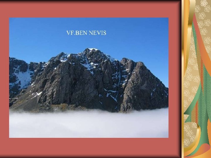 Relieful -Relieful este variat, fiind format din munți vechi , podișuri și câmpii. -Altitudinea maximă este de 1. 343 metri în vârful Nervis (Munții Grampian). -În partea de sud a Angliei se află Câmpia Londrei. -Alte unității de relief : Munții Penini , Cambrieni, Scoției de Sud.