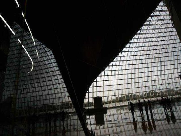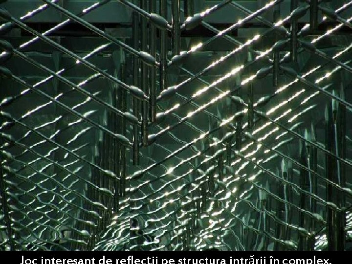 Acoperişul cu panouri de titan şi o cortină de sticlă laminată, care se