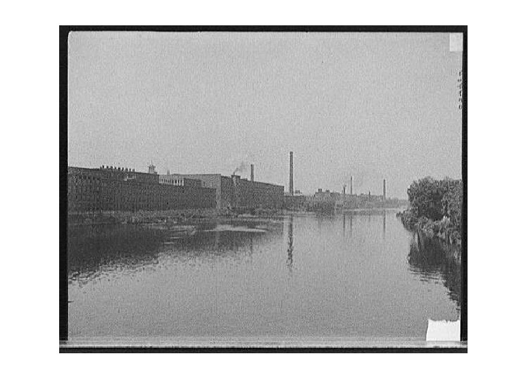 In the 1830 s, Lowell , Massachusetts , became one of the first factory towns in America. Using the local river water as a power source, many mills emerged in the town to produce textiles. Many other towns in the Northeast were built using Lowell as a model for building new cities around factories. Detroit Publishing Co. (1900 -1910). Lowell, Mass. , mills on Merrimack River. Library of Congress: Prints & Photographs, Detroit Publishing Company Collection.