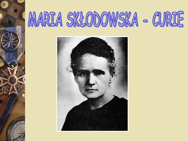 Maria Skłodowska-Curie herbu Dołęga (ur. 7 listopada 1867 r. w Warszawie, zm. 4 lipca 1934 r. w Sancellemoz) — światowej sławy uczona pochodzenia polskiego. Większość życia spędziła we Francji, tam też rozwinęła swoją karierę naukową. Zajmowała się badaniami z zakresu fizyki i chemii. Żona Pierre'a Curie, matka Eve Curie i Irène Joliot-Curie. Do jej największych dokonań należą: opracowanie teorii promieniotwórczości, technik rozdzielania izotopów promieniotwórczych oraz odkrycie dwóch nowych pierwiastków — radu i polonu. Pod jej osobistym kierunkiem prowadzono też pierwsze w świecie badania nad leczeniem raka za pomocą promieniotwórczości. Była prekursorem nowej gałęzi chemii — radiochemii. Dwukrotnie wyróżniona Nagrodą Nobla za osiągnięcia naukowe. Po raz pierwszy w roku 1903 z fizyki wraz z mężem za badania nad odkrytym przez Antoine'a Henri Becquerela zjawiskiem promieniotwórczości, a drugi raz w roku 1911 z chemii za wydzielenie czystego radu. Do dziś pozostaje jedyną kobietą, która tę nagrodę otrzymała dwukrotnie.