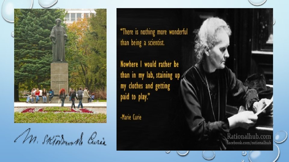BIOGRAPHY NAME BORN DIED : MARYA SKLODOWSKA (MARIE SKLODOWSKA) : 7 NOVEMBER 1867 IN WARSAW, KINGDOM OF POLAND, PART OF RUSSIAN EMPIRE : 4 JULY 1934 (AGED 66)PASSY, HAUTE-SAVOIE, FRANCE CITIZENSHIP : POLAND (BY BIRTH) FRANCE (BY MARRIAGE) INSTITUTIONS: UNIVERSITY OF PARIS NOTABLE AWARDS: NOBEL PRIZE IN PHYSICS (1903) DAVY MEDAL (1903) MATTEUCCI MEDAL (1904) ELLIOTT CRESSON MEDAL (1909) ALBERT MEDAL (1910) NOBEL PRIZE IN CHEMISTRY (1911) WILLARD GIBBS AWARD (1921)