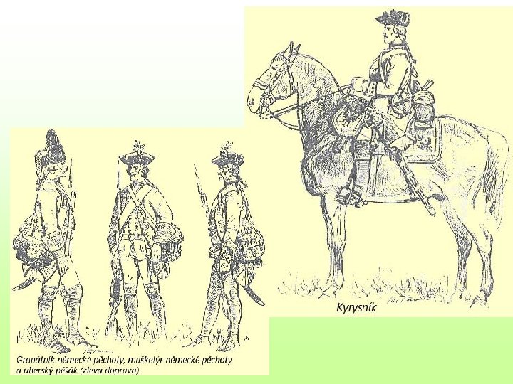 • • • po nástupu na trůn - její nároky zpochybnili bavorský kurfiřt, pruský král i francouzský král války o dědictví rakouské 1740 – 1742 - 1. slezská válka 1744 – 2. slezská válka 1756 – 1763 - sedmiletá válka střídavé neúspěchy: Praha několikrát obsazena: 1741 - bavorský kurfiřt s podporou poloviny české šlechty korunován českým králem, plenění českých zemí, 1757 - Praha bombardována / poškozen Pražský hrad a zničeno 900 domů