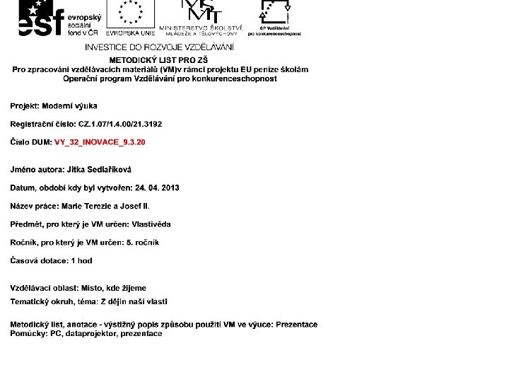 Autor prohlašuje, že tento materiál je jeho prací, nebo je stažen z uvedených zdrojů. � http: //cs. wikipedia. org/wiki/Marie_Terezie#m ediaviewer/Soubor: Mariatheresiaoldfamily. jp g � http: //cs. wikipedia. org/wiki/Marie_Terezie#m ediaviewer/Soubor: Georg_Decker_001. jpg