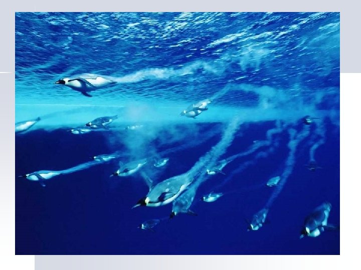 Adaptations for swimming, diving, cold water & snow n n Solid bones Hindlimb Ø Rearward rotation Ø Webbed feet Ø Claws n Forelimbs Ø Modified as paddles n n Air sacs: reduced Other…
