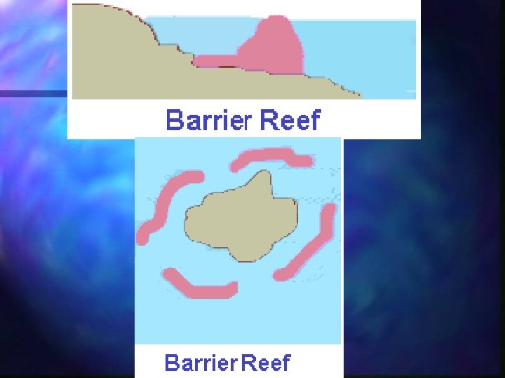 Examples n Many coral reefs are made of red coralline algae that photosynthesize. n Others have zooxanthellae (symbiotic algae) that live and photosynthesize in their tissues. n Not all corals have zooxanthellae, but only those with it build reefs. n Coral animals also capture food at night with stinging tentacles that paralyze zooplankton and small animals that drift nearby.
