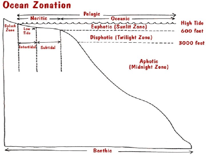 Photic Zone- above 200 m • Made up of the euphotic & disphotic zones • Sunlight penetrates • Plant life and animal life is abundant