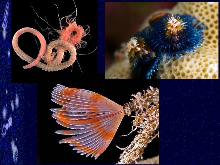 § Tube-dwelling lifestyle § Ex. Feather dusters § secrete tubes to inhabit. § extend tentacles to collect particles (suspension feeders). § Retract tentacles into tube for protection Fig. 9 -22 b