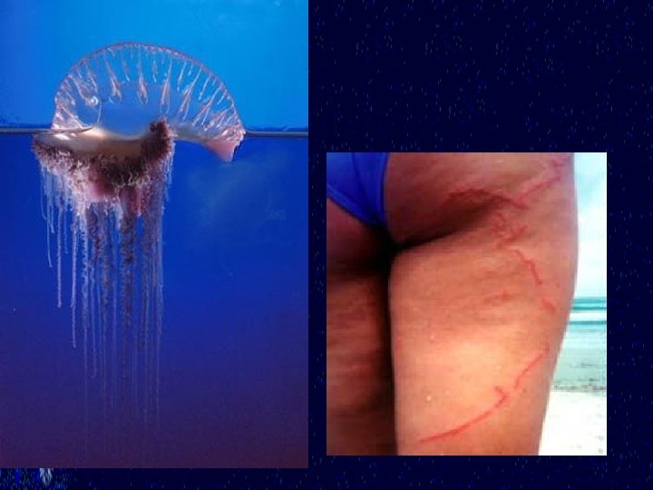Class Hydrozoa § Greek “water animals” § Ex. Physalia § Float using gas (N) filled pneumatophore § colonial organism with polyp members dangling beneath medusa § § § reproduction digestion offense/defense Fig. 8 -9 a, b