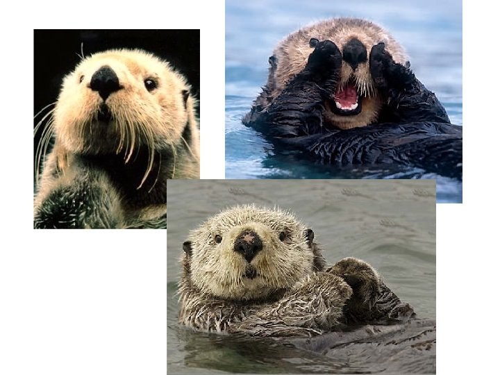 Sea Otters • Are members of the Order Carnivora. • They are the smallest Marine Mammal, weighing 60 -80 lbs. • They lack a layer of blubber, and make up for it by trapping air in their dense fur. • They were slaughtered to the brink of extinction for their beautiful fur, but became protected by an international agreement in 1911. • They are playful, and intelligent. • They eat mostly shell fish and spend most of the day maintaining their fur.