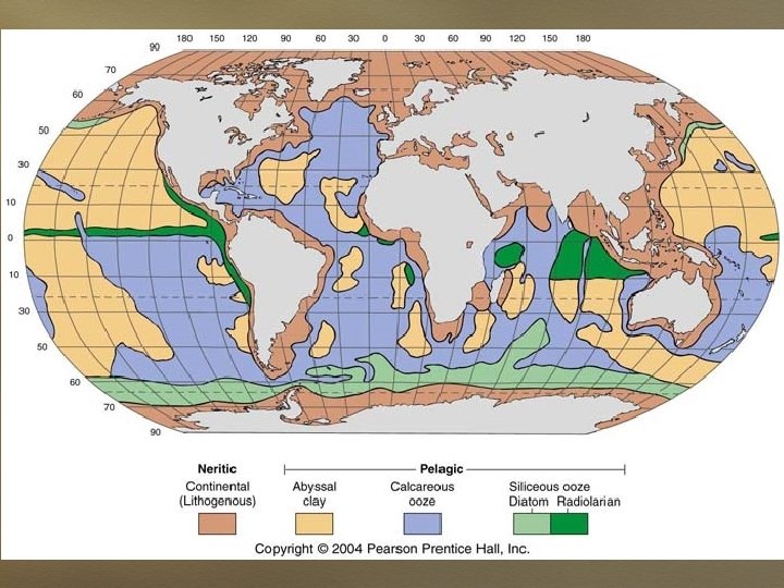 Siliceous Oozes consist of >30% Si. O 2 shells Radiolarian - plankton Diatoms - plankton Heterotrophs Love warm water Found in the Equitorial Pacific Distribution is related to the biology of the organism…… Photosynthesis Found of cold water Lots of light and nutrients High latitudes