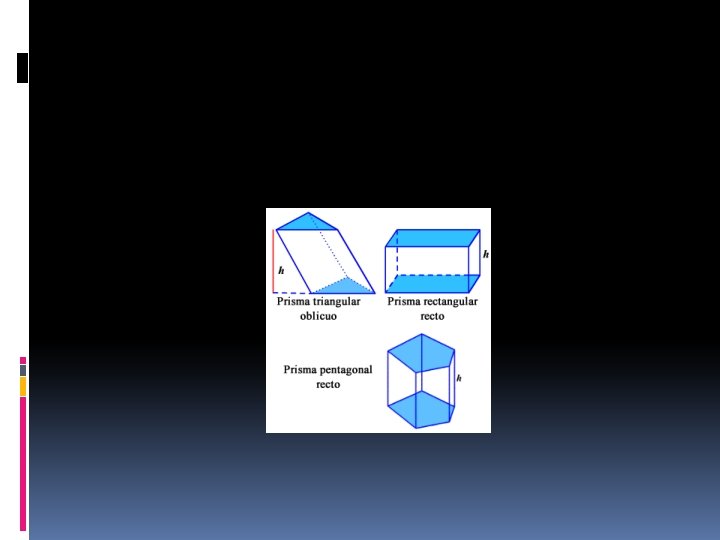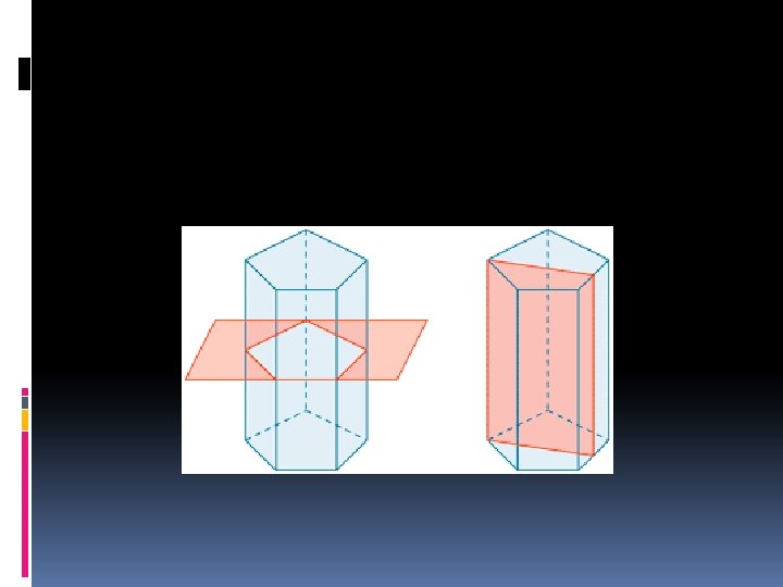 Tronco de prisma Es una parte de un prisma limitada entre la base y la sección originada por un plano no paralelo a la base y que interseca a todas las aristas laterales. 2
