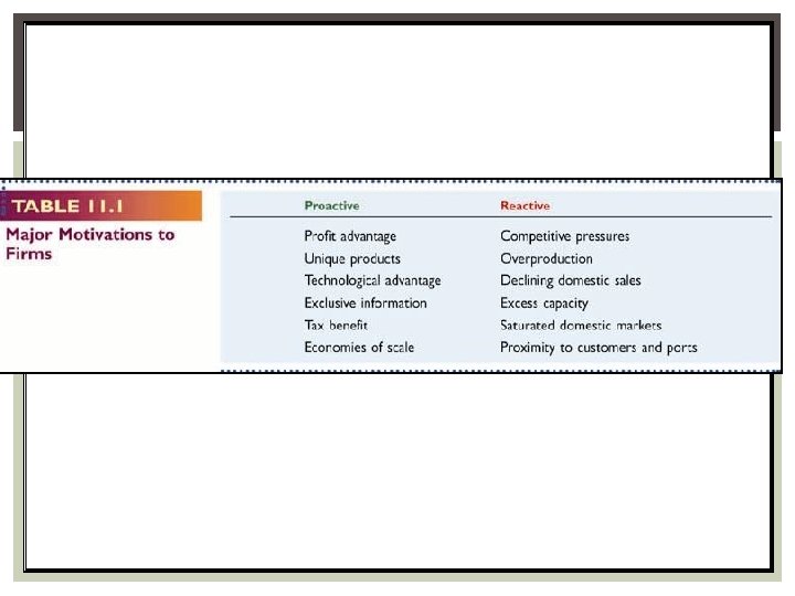 FOREIGN DIRECT INVESTMENT Firms are categorized as: § Resource seekers - Search for natural and human resources. § Market seekers - Search for better opportunities to enter and expand within markets. § Efficiency seekers - Attempt to obtain the most economic sources of production.