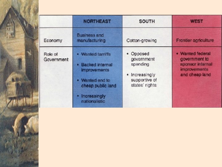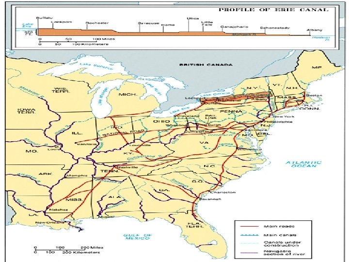 – commercial farming • Cotton Gin, Steel Plows, Mechanical reapers, Cotton, West grain, bread basket, surpluses sold at the market – factory system – • NE textiles, water power, Slater smuggles info in, Lowell Girls, – US government • American System, Embargo, protectionist tariffs, laissez-faire economics, patents, contracts, LLC – transportation • Canals (Erie), steamboats west, clipper ships int. trade, turnpikes, national road, covered wagons, RR – Labor • Women- Lowell Girls, replaced by immigrants, people moving from the farms, slaves