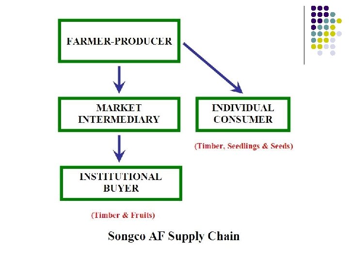 l Return on investment is not immediate compared to high-value vegetables hence tree planting is unattractive l l AF farms converted to monocropped vegetable farms Chicken-and-egg situation: § § § Low investment for tree planting Results in few marketable products Results in few buyers for these products § and back to low investment ….