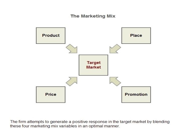 Marketing Mix • Mc. Carthy classified these tools into four broad groups that he called the four Ps • 4 Ps of marketing: • Marketers use numerous tools to elicit the desired responses from their Target Markets.
