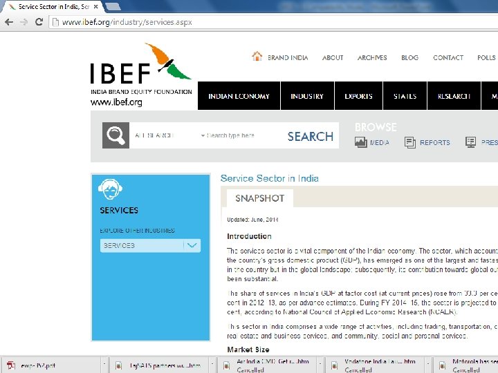 GDP - composition by sector (India) Agriculture: 17. 4% Industry: 26. 1% Services: 56. 5% (2012 est. ) Source: http: //www. indexmundi. com/india/gdp_composition_by_sector. html