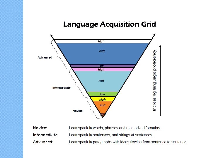 The importance of speaking the same language… fluent novice advanced proficiency intermediate low, mid, high