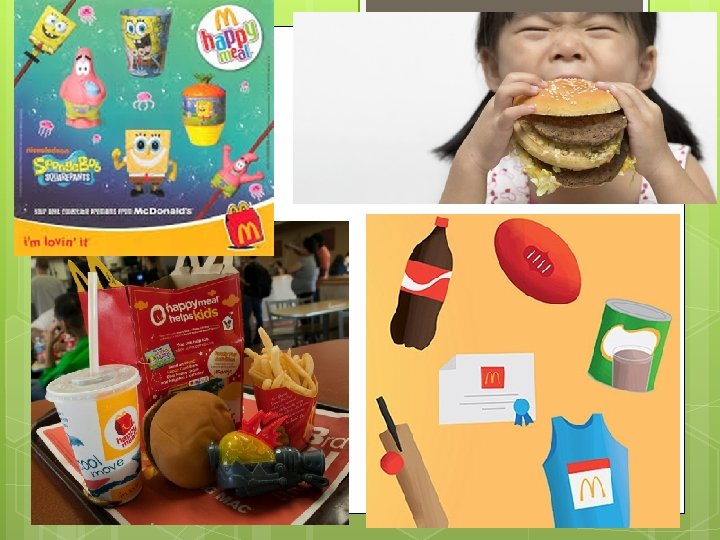 How is food marketed directly to children? Using cartoon characters Toy give-aways at fast food resturants- especially with the accumulation of ‘sets’ over numerous weeks Sponsorship over junior sports competitions Use of high fat – high sugar foods in fundraising Competitions to win bikes/sports equipment etc.