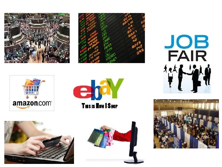 What is a Market ? • In economic theory, a market is where buyers and sellers of goods and services (or resources) are come together to carry out an exchange/transaction. • In addition to the physical places, markets also includes non-physical places where buyers and sellers can come together through – Internet/online, phone, fax, etc. • Markets can be local (buyers and sellers in the local region e. g. local grocery), national (within the country), and international (anywhere in the world e. g. oil) • types: – Goods and services (product markets) – Resources (factor markets eg labor market) – Financial markets where international currencies, securities and stocks (ownership of companies) are bought and sold • and underlying all markets is the concept of Demand Supply