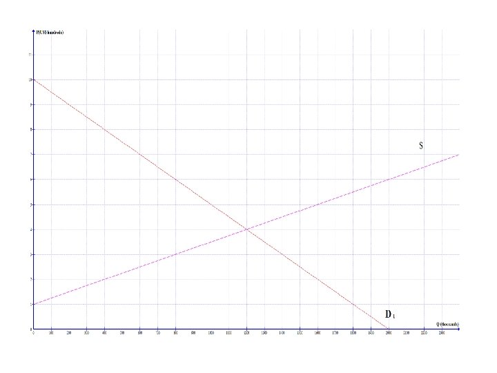 Calculating the Market Equilibrium (Review) • Do Section (e) of Page 3 of H/O • Using the demand supply functions for the chocolate bars: Qd = 14 – 2 P Qs = 2 + 2 P • Market equilibrium price and quantity are values where • Qd = Qs • Therefore, the equilibrium price is $3 and equilibrium quantity is 8, 000 chocolate bars – You can check your calculation by inserting P = 3 into the demand or supply equations and see whether you obtain Qd = Qs = 8