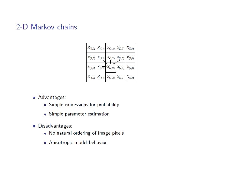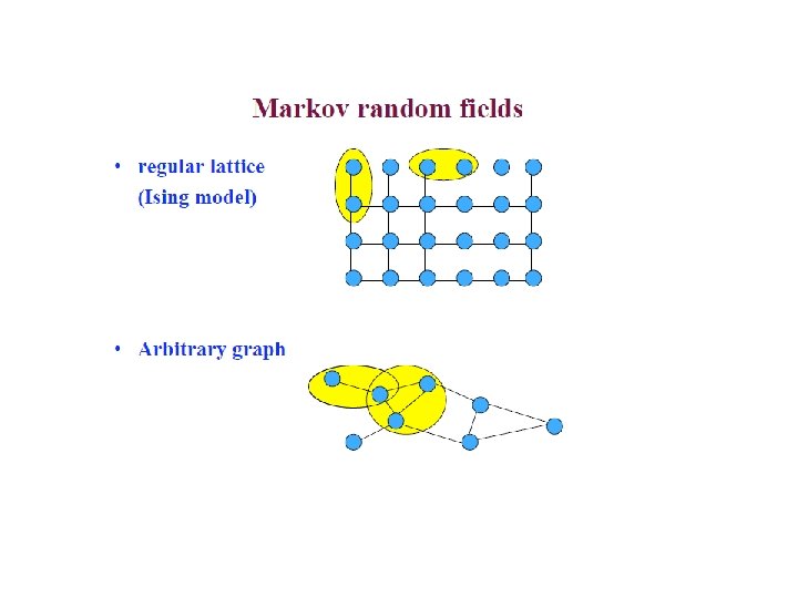 Markov Random Fields • When the probability distribution is strictly positive, it is also referred to as a Gibbs random field, because it can then be represented by a Gibbs measure. • The prototypical Markov random field is the Ising model; indeed, the Markov random field was introduced as the general setting for the Ising model. [1] • In the domain of artificial intelligence, a Markov random field is used to model various low- to mid-level tasks in image processing and computer vision. [2] • For example, MRFs are used for – image restoration, image completion, segmentation, image registration, texture synthesis, super-resolution, stereo matching and Information Retrieval.