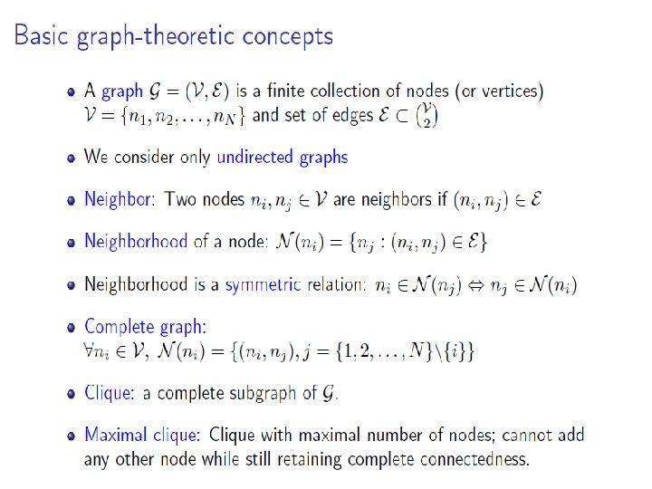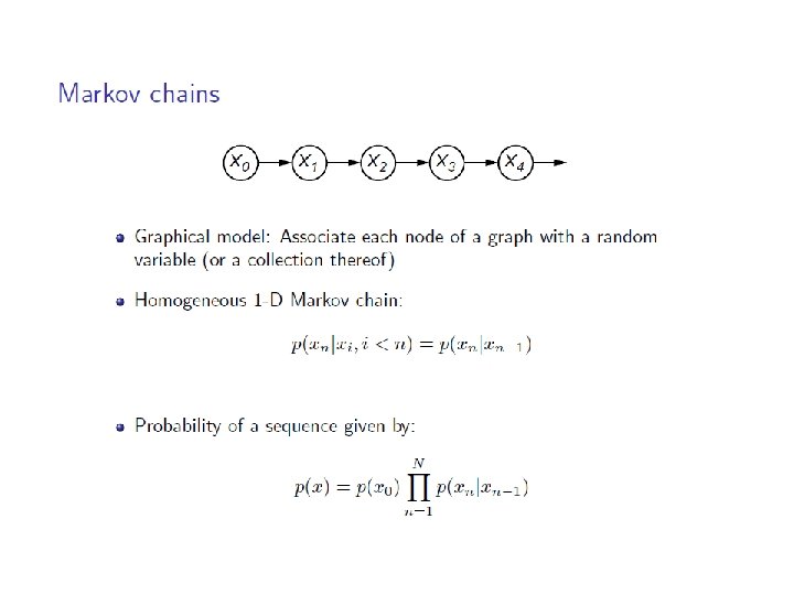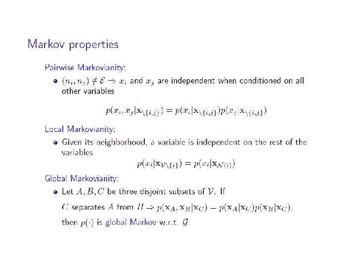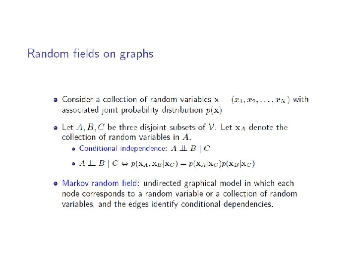 In an Undirected Graph • Consider two nodes and that are not connected. • Must be conditionally independent • So, the conditional independence property can be expressed as The set x of all variables with and Factorization Property removed