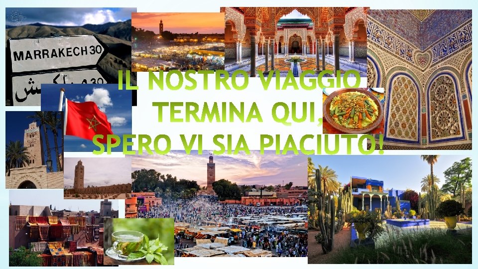 STORIA *Marrakech è una città del Marocco situata al centro-sud del Paese. A circa 150 km dalla costa dell'Oceano Atlantico. *Marrakech comprende una vecchia cittadina fortificata brulicante di venditori con le loro bancarelle (medina), circondata da quartieri più moderni, il più importante dei quali è Gueliz. * Tra il XVII ed il XIX secolo la città perse molta della sua importanza commerciale che riacquistò alla fine dell'800. MEDINA
