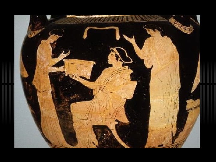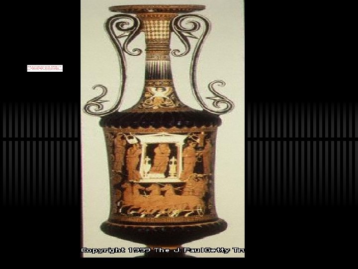 Loutrophoroi and Lebes Gamikos ü Loutrophoros are linked with weddings and funerals since they are used to bring water (loutron) for ritual baths ü Lebes Gamikos, a nuptial cauldron, had various functions -- storage, warming, vase, or symbol