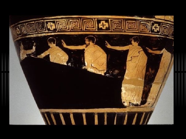 Kedeia “The Funeral” Prothesis -- laying out of the body Ekphora -- Conveyance of body to its place of internment Perideiprion -- Banquet