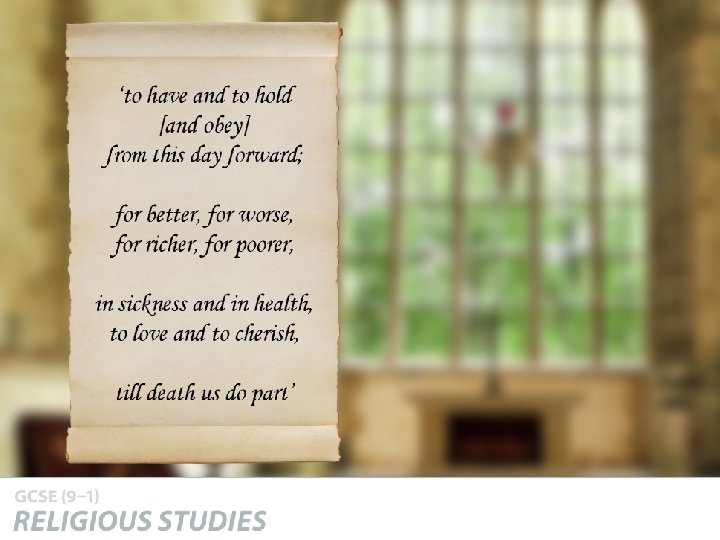OCR Resources: the small print OCR’s resources are provided to support the teaching of OCR qualifications, but in no way constitute an endorsed teaching method that is required by the Board, and the decision to use them lies with the individual teacher. Whilst every effort is made to ensure the accuracy of the content, OCR cannot be held responsible for any errors or omissions within these resources. © OCR 2016 - This resource may be freely copied and distributed, as long as the OCR logo and this message remain intact and OCR is acknowledged as the originator of this work. OCR acknowledges the use of the following content: Wedding rings: Oleksandr Koval/Shutterstock. com, Scroll: Seregam/Shutterstock. com Please get in touch if you want to discuss the accessibility of resources we offer to support delivery of our qualifications: resources. feedback@ocr. org. uk