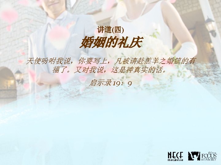 SERMON 4 The Celebration of Marriage And the angel said to me, “Write this: Blessed are those who are invited to the marriage supper of the Lamb. ” And he said to me, “These are the true words of God. ” (Rev. 19: 9)