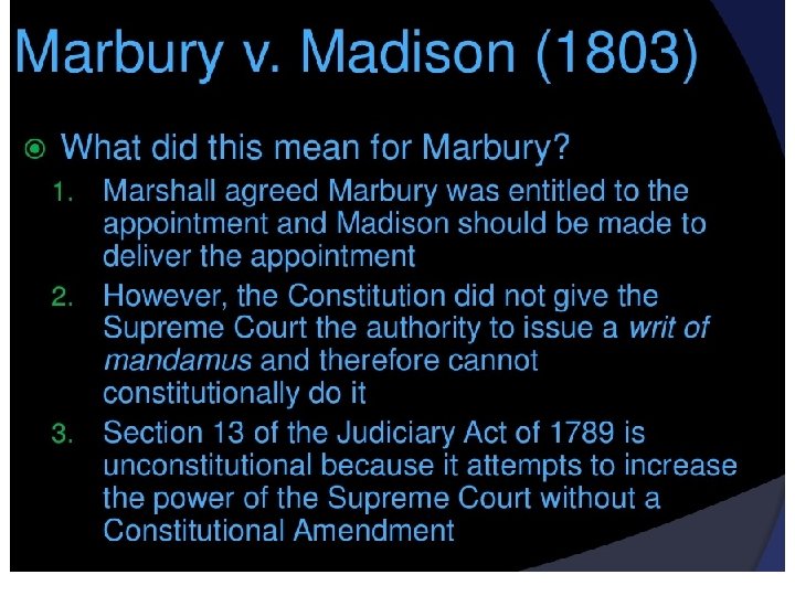 Marshall Court Marbury vs Madison and other landmark