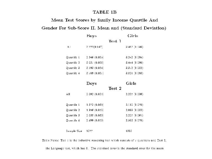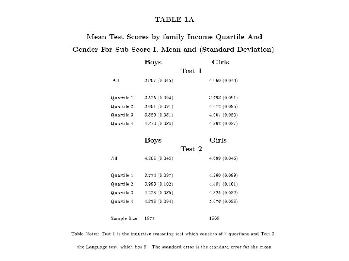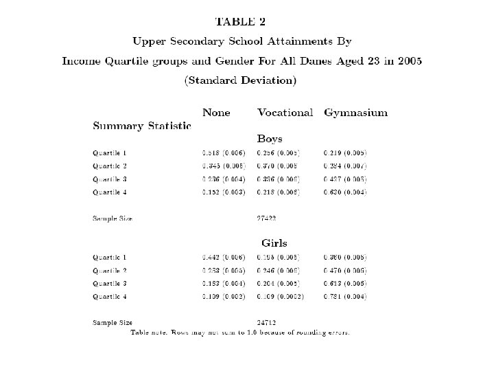 It’s (Almost) All About the Money: Why Danish Children Do Badly in Test Scores (Mc. Intosh and Munk submitted paper) • Studie hvor vi undersøger 11 -årige børns performance, • I analysen indgår af en helt masse baggrundsvariable: forældres uddannelse, indkomst, antal søskende, forældreholdninger angående værdien af uddannelse, og forældrenes opfattelse af kvaliteten af deres børns skole, om forældrene var skilt, separeret eller ej, hvor meget moderen arbejder, og børnenes generelle helbred, om børnene har emotioneller adfærdsmæssige problemer eller ikke kan koncentrere sig i skolen
