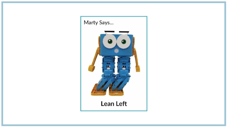 1. Design an obstacle course that Marty could go around in your workbook 2. Build your obstacle course in groups 3. Plan out how Marty will tackle the course by using your remote control to walk him around 4. Finally, program him to do it automatically without your input Don’t forget to think about what kind of movements I can make so you can design obstacles that I can go around!