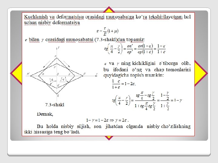 Ma’ruza № 7 SILJISH. SОF SILJISHDAGI GUK QОNUNI. Reja: ØSiljish haqida tushuncha ØSof siljish ØKesilish va siljishdagi kuchlanish.