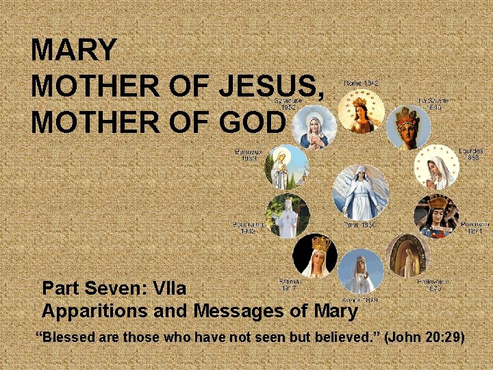 MARY MOTHER OF JESUS, MOTHER OF GOD Part Seven: VIIa Apparitions and Messages of Mary “Blessed are those who have not seen but believed. ” (John 20: 29)