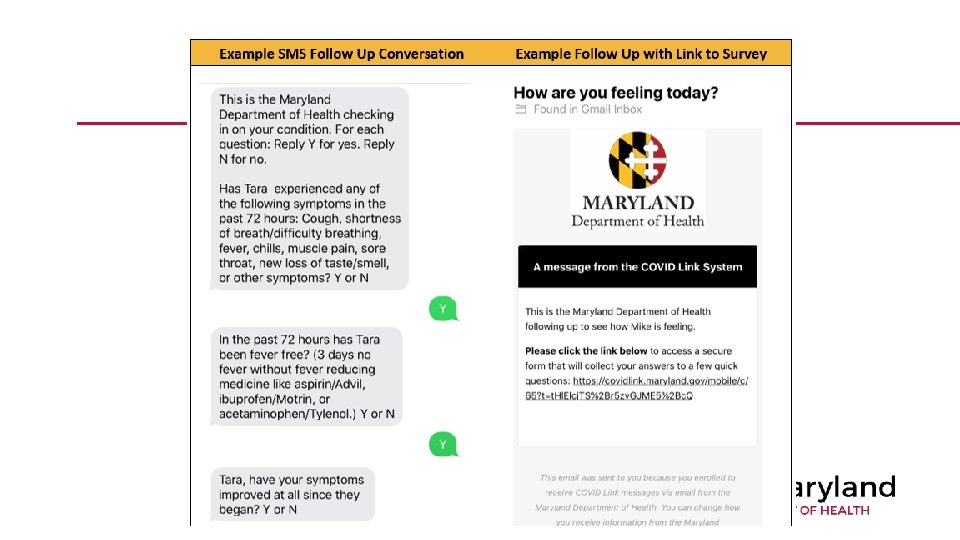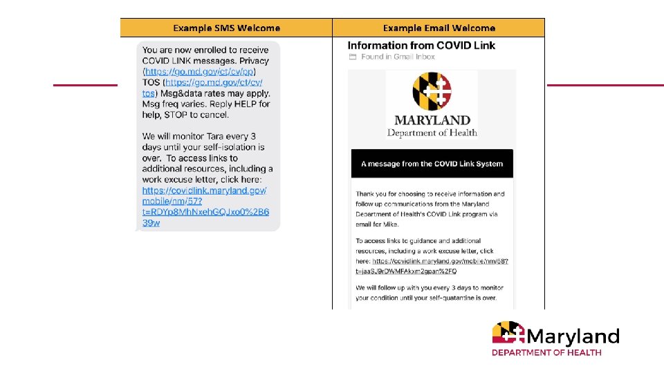 The authenticity of letters generated by the COVID Link system can be verified. Employers, schools, or other groups that need to verify that a Work Excuse or Work Clearance letter is authentic can go to https: //covidlink. maryland. go v/verify to confirm the letter was generated by the system. They will need to enter the first name, last name, and letter ID printed on the letter.